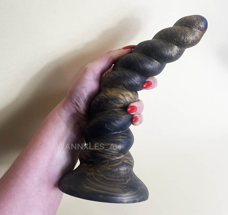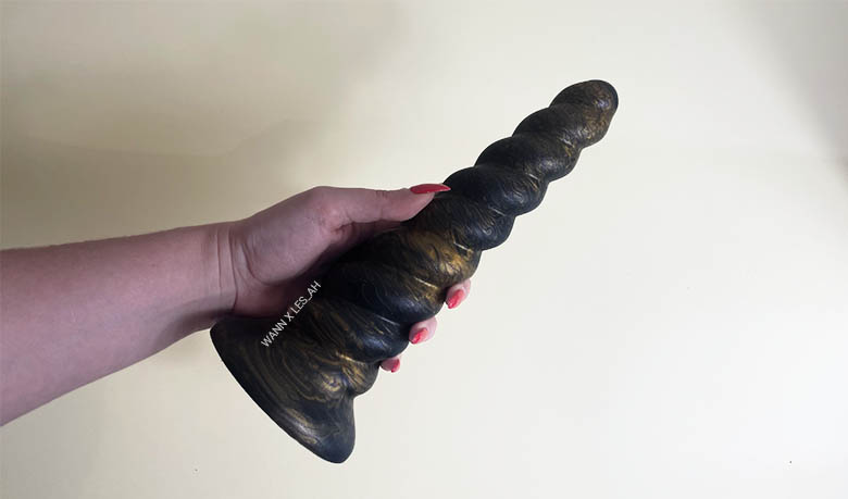 Forte de toute cette excitation, direction la salle de bain pour avoir une surface me permettant de ventouser le jouet. Une petite noisette de lubrifiant anal, comme vous le savez, j’utilise toujours celui de la marque Yes for lov pour ses propriétés décontractantes en plus du côté lubrifiant. Ni une ni deux, je me poste devant le toys, et il rentre quasiment tout seul, sans aucune douleur malgré sa taille. Sa dureté médium est parfaite, et encore une fois je me laisse surprendre par les sensations inédites que m’offrent les spirales de la corne, chaque va-et-vient est un plaisir, et un nouvel orgasme s’offre à moi. Ayant les mains libres, nous pouvons aisément jouer à deux et coupler cette pénétration avec une fellation, une masturbation, etc.