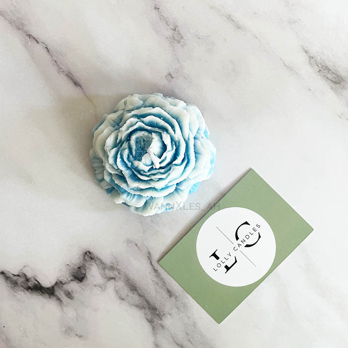 J’ai été surpris de la couleur bleu vif de cette bougie. La couleur reste telle qu’elle une fois solidifiée. Aors que son état d’origine est bleu pâle avec un peu de blanc.